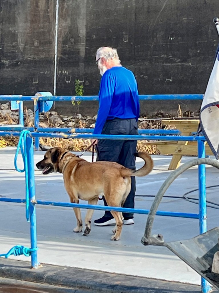 Sunshine pulls into the dock around 3 p.m. We recognize a Looper coming to help us – Frank from Summer Fling, also in our Flotilla #12. He and his wife Mona are dining outside on the patio. He asks us to join them but Captain Pat has boat tasks to do.