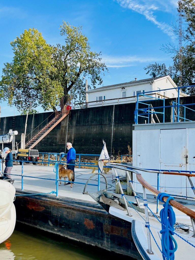 You got that right. We learn some of the boats are anchoring out in lieu of Logsdon Tug. We will all convene tomorrow morning to travel through the next Lock.