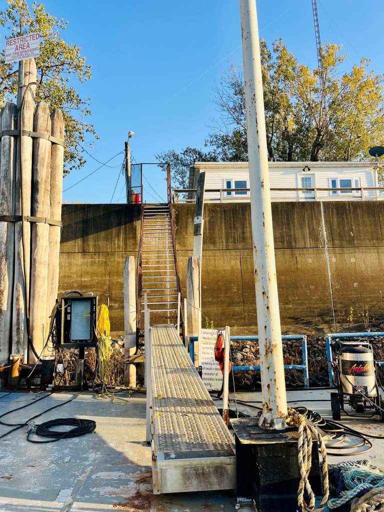 Logsdon is a barge that boats raft up to. We are wondering if there will be enough room at the Tug Service. Captain Pat is in conversation with Jim on Acadia – “if Logsdon is full, where would you go? I hear one of the best comments ever for the Loop: