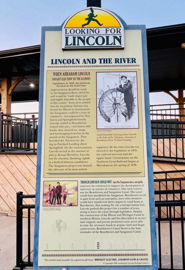 After cruising all day, Captain Pat is exhausted and needs a well-deserved nap. The Admiral takes a walk into the little town of Beardstown. Abraham Lincoln and eagles have a presence here – two of my favorite things.