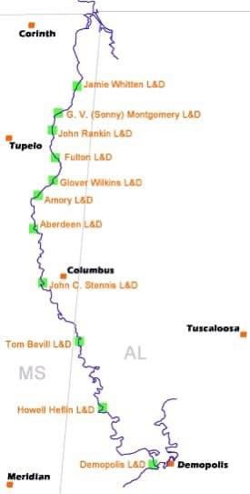Many Loopers refer to the entire waterway from Paducah (Mile 0 on the Tennessee River) to Mobile Bay as the Tennessee-Tombigbee Route or Waterway. Technically the “Tenn-Tom” is only 234 miles of this 655 miles of waterway system to Mobile Bay.