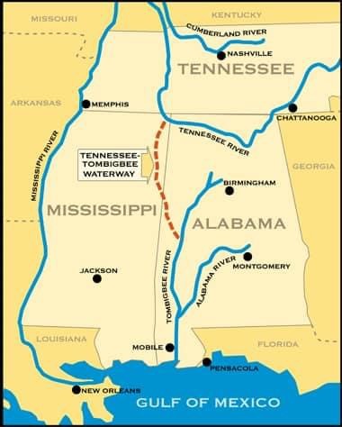 The Tennessee, Kentucky Lake, and Tombigbee Waterway to Mobile Bay