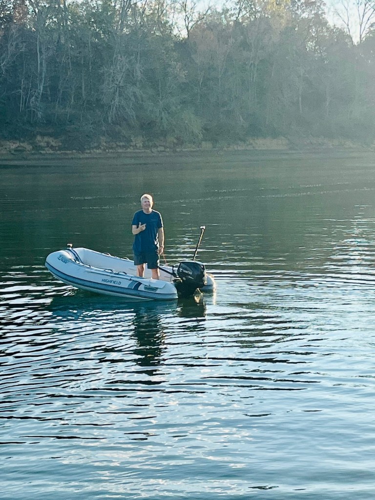 It’s always heartwarming to witness a Looper’s “first” boating experience. Early afternoon we anchor in Swallow Bluff Island. Mark on Paradise was so excited to put his dinghy in the water and take it for a spin.