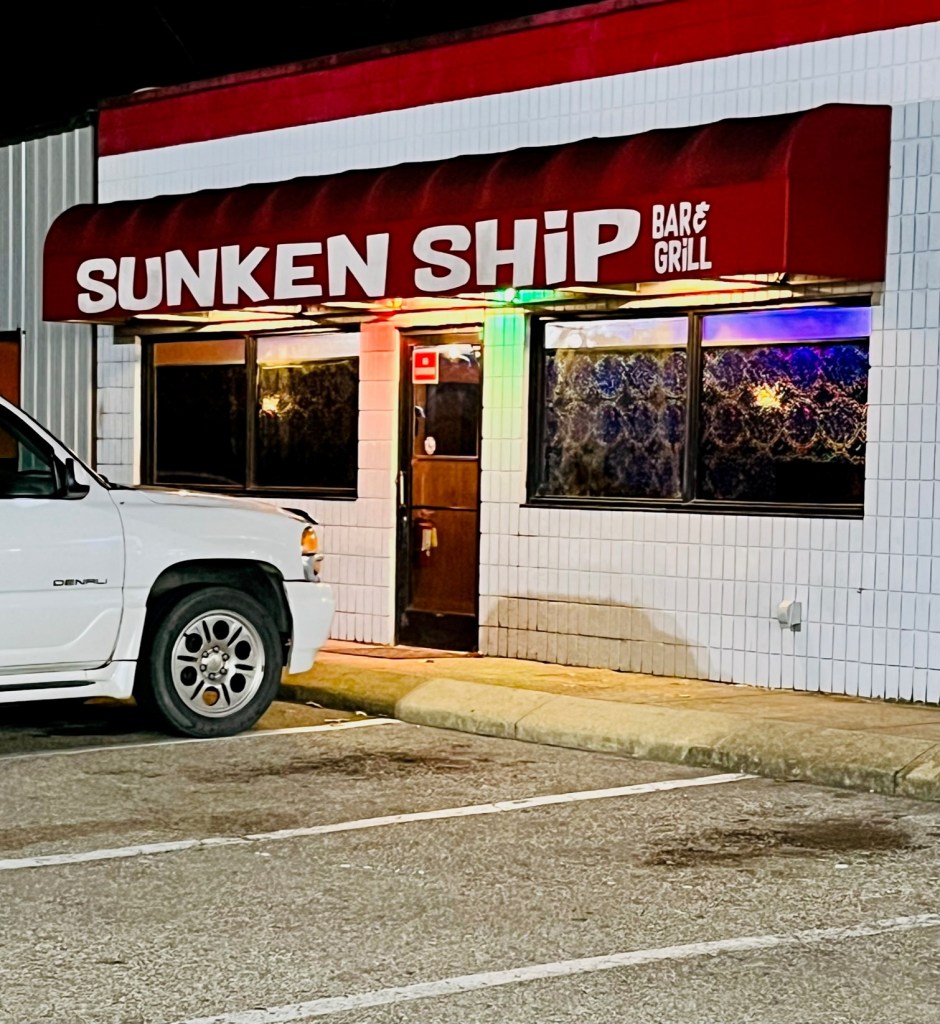 We stop at a gas station to return the car filled up. There’s a honky tonk bar next to the gas station with an ominous name: