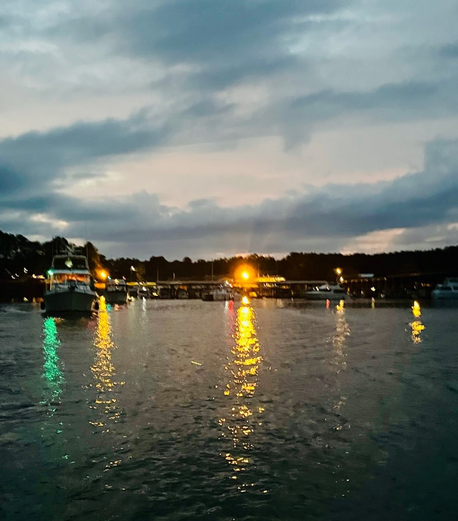 Sure enough, we spot a black dog. We slow down and he swims right in front of the boat. We see his big ears and eyes and his collar. He looks like he knows where he is going, like he’s made this trip before. I sure hope so! Other boats said he made it to the opposite shore and seemed ok.