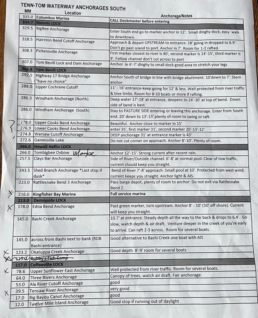 The dockmaster finally gets everyone registered and leaves us with us resource guides for the Tenn-Tom Locks and Waterway Anchorages.