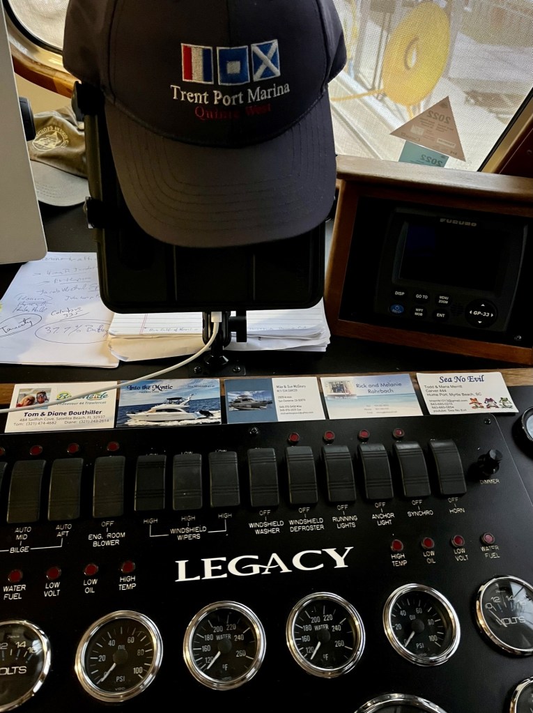 There are so many boats and owner names to keep up with. Captain Pat keeps the boat cards of the boats we are travelling with on his helm dash, so he has an aid to help him with boat and crew names.