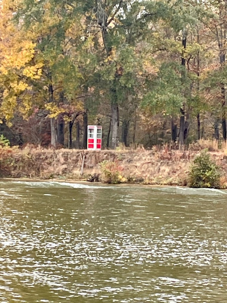 There is the occasional announcement over the radio of a log in the river, or an upcoming barge. Once Todd even announced there is a telephone booth on our starboard side!
