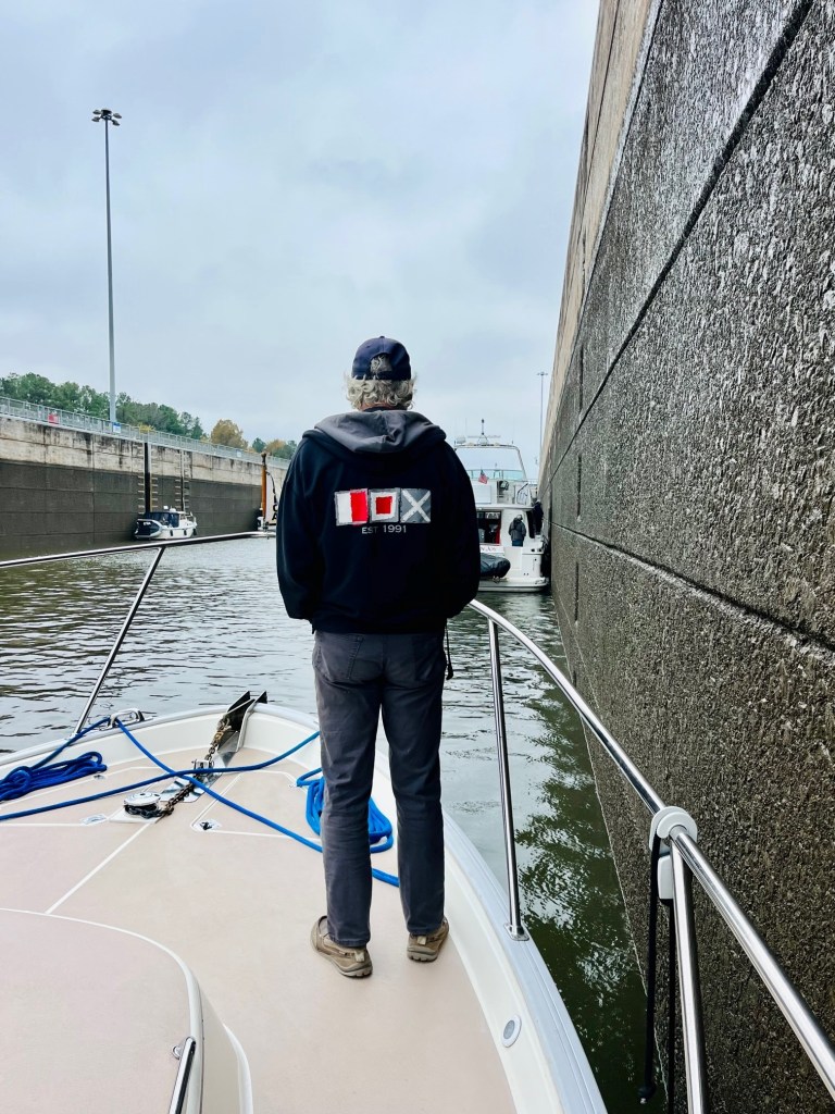 Captain Pat wants to make it through the Howard Hefflin lock today, then anchor just past that. The other flotilla boats opt not to cross the Hefflin lock today, and instead are anchoring just before lock.