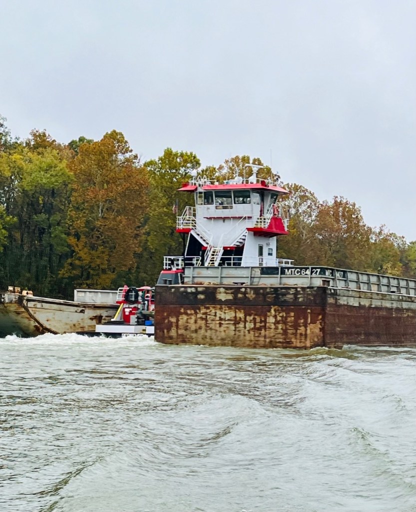 As we travel the river we encounter sizable barges with towboats, white picturesque cliffs and old bridges.