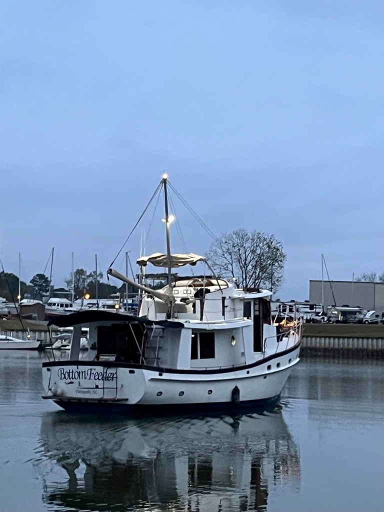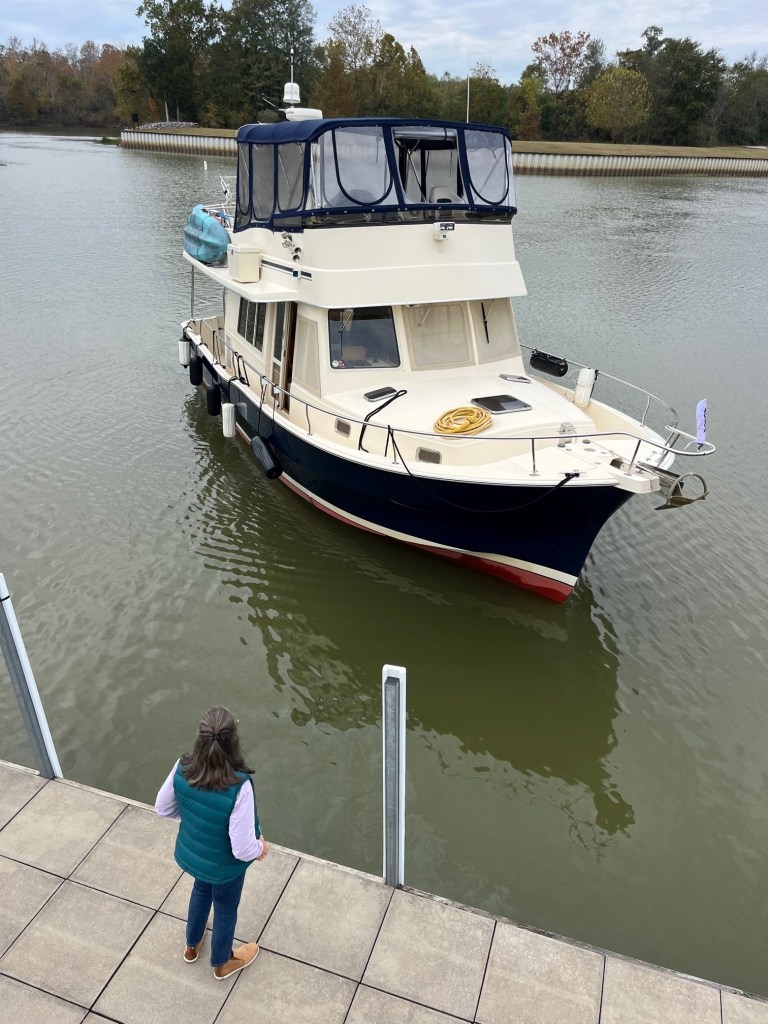Turns out Blue Horizon is docked two slips over. Hunky Dory on the other side, and Lyra, an Albin owned by Scott and Melissa, just down from us. Done Saving is a few slips down. And the cutest red Ranger Tug (my new favorite boat) named Hoppy Trails with a three-year-old girl and a golden doodle always peeking out of the back as you walk to the laundry-bath-lounge.