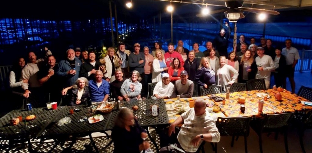 We join about 40 other Loopers at 4:30 for “Docktails” on the roof of the lounge building. This is our biggest gathering with Loopers for sure!