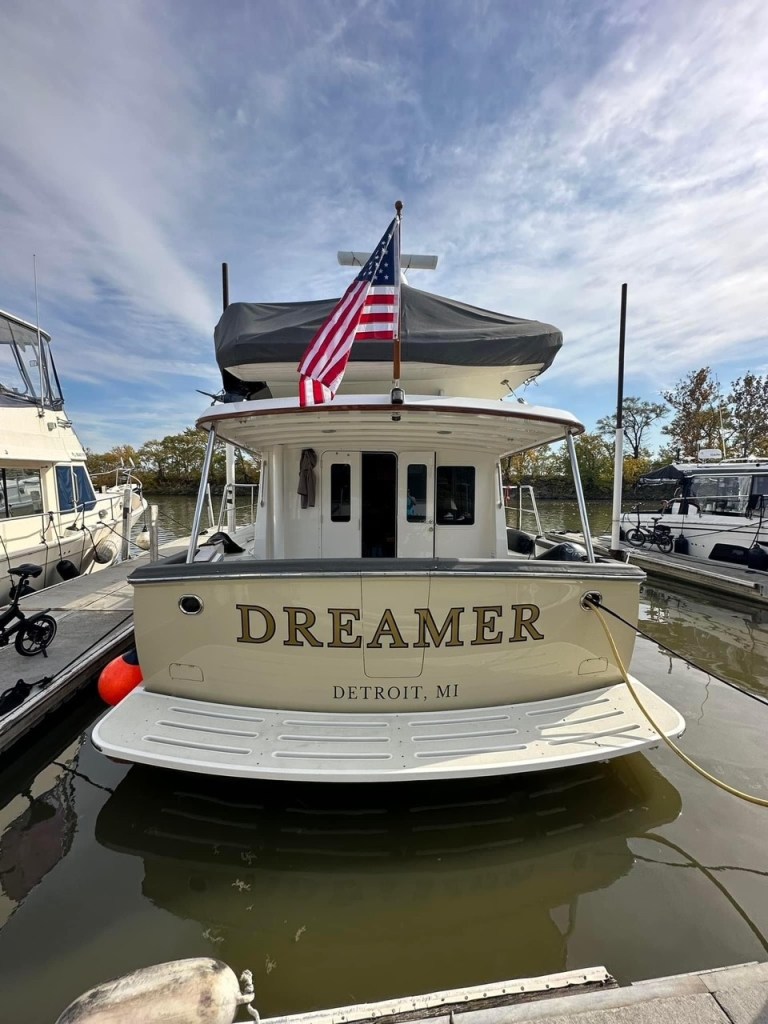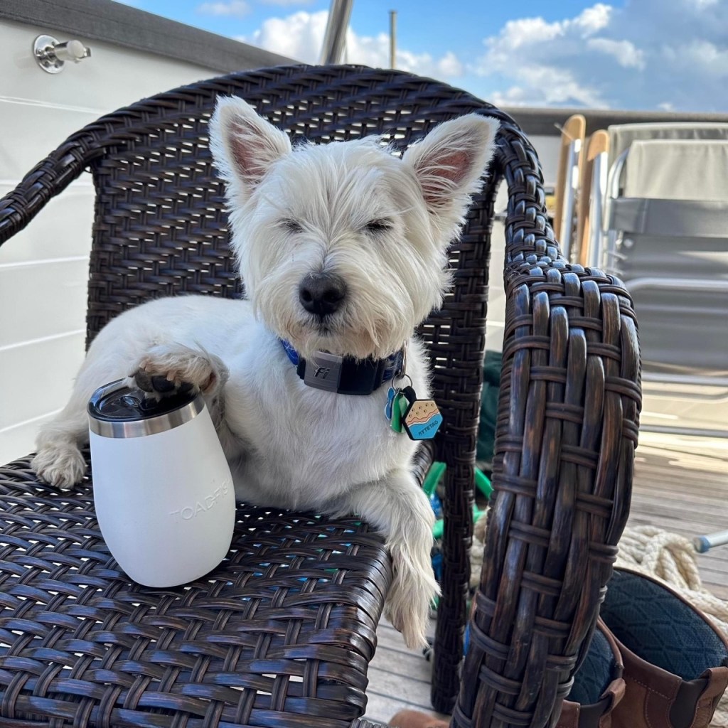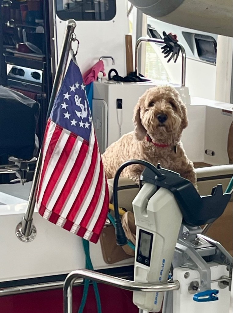 I later learn, this dog is a Looper celebrity! He is Sully of the Facebook blog “Sully Does the Loop!” Sully belongs to Scott and Lauren aboard Dreamer, a beautiful Krogen Express.