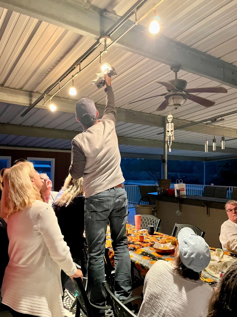 Todd gets us all together for a group shot. The light is in the way – to the rescue.