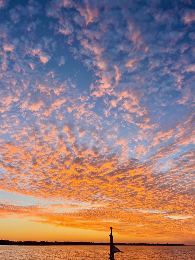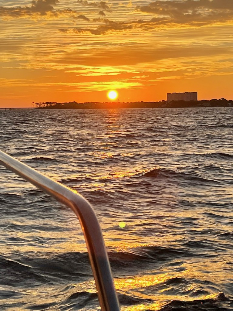 Approaching Choctawhatchee Bay we witness an incredible sunset. We anchor for the evening just outside of Destin. The sunset splendor is incredible.