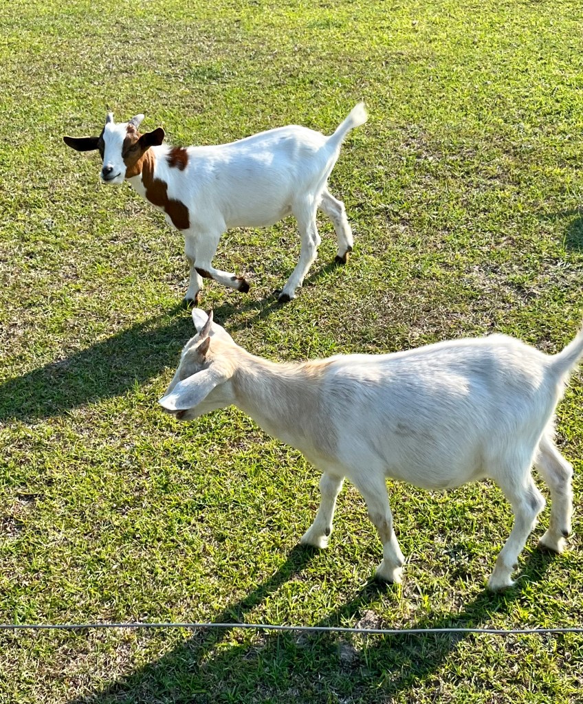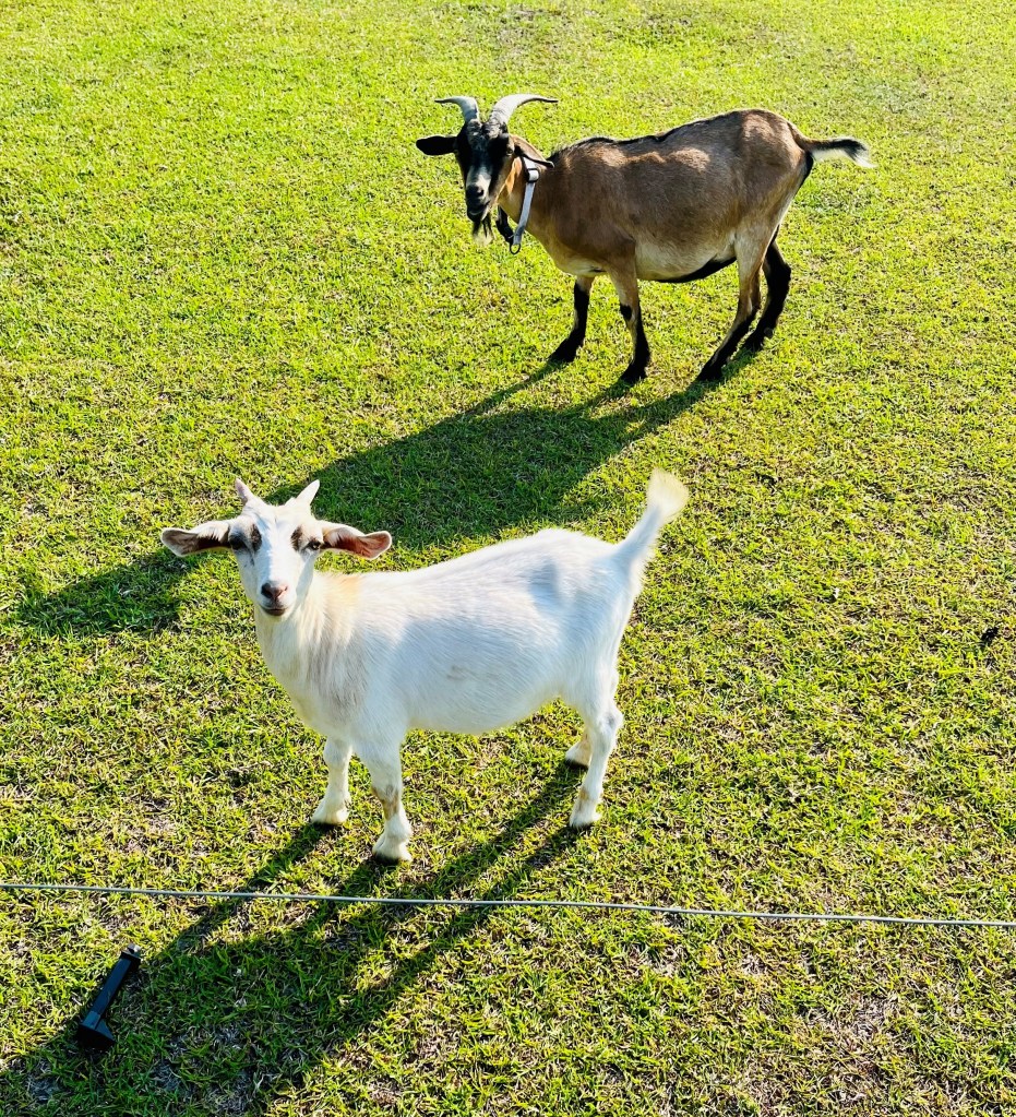 Do not feed the alligators!Osprey Marina Office and LoungeLots of live aboard sailboats here. A young couple with their pup lived on this one – Miracles.Our little buddy – Mr. Turtle – who brought along friends the next morningOut on my walk I discovered a field of goats!Comfortable loungeThe resident Uber driver, Bill, a retired marine, lives aboard this boatPatrick taking a break after cleaning the boatGot my dog fix! They remind me of Nica and Buddy.And of course I fed the marina kitty!