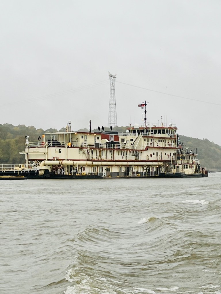 Entering the Ohio River is an exciting moment for me. I grew up in Owensboro, Kentucky, on the Ohio River across from Evansville, Indiana. According to our Looper guidebook, the Ohio River presents you with a mighty two – to three-mph current. Therefore, 6-knot boats become 3-knot boats and 13-mph boats become 9-knot boats.