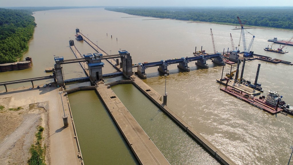 Near the confluence of the Mississippi, Ohio, Tennessee, and Cumberland Rivers is where more commerce traverses than any other location in the U.S. inland waterways. The Olmstead Lock and Dam is a lock and wicket dam on the Ohio River at river mile 964.4 The project will eliminate Locks Number 52 and 53 – they are well beyond their designed service life. There will be a fourfold increase in efficiency, reducing tow and barge delays.