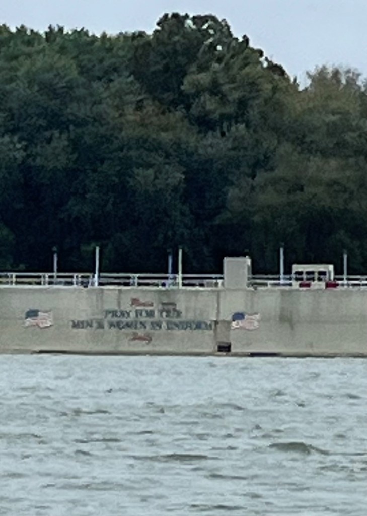 The guidebook also says this is one part of the journey few Loopers enjoy. The last 48 miles to the Olmstead Lock 53 you are against a mighty two- or three-mph current, slowing you down. You never know how long it will take to get through the locks. It could be an hour, it could be twenty hours. The journey is safe enough, it is just the timing and slow pace that’s annoying.