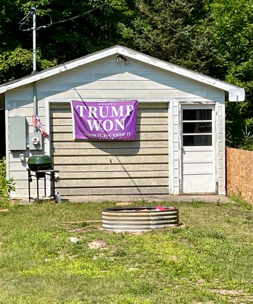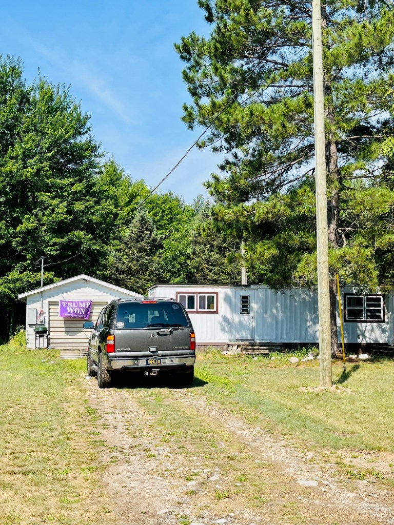 A trailer home catches my eye. It has a ‘Trump’ sign you just can’t miss!