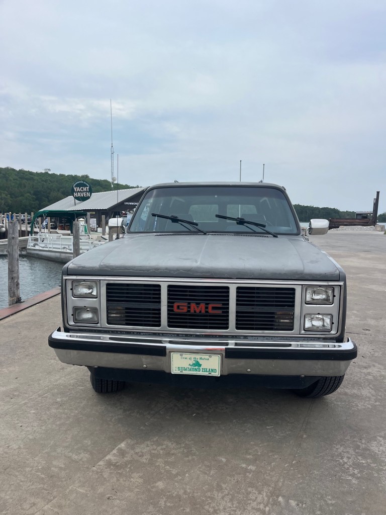 The marina rents cars to the transient boaters for $20 a day. We decide to go to the grocery and scout out restaurants for our anniversary dinner. Here’s our car -an older model Suburban.