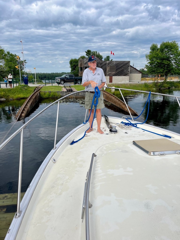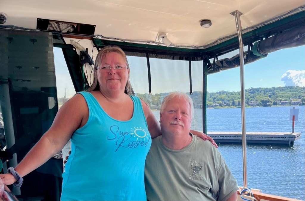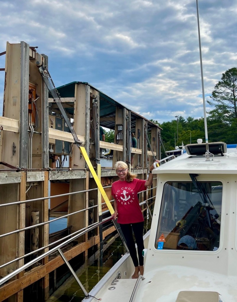 There are so many marinas in this area of Georgian Bay. I put out an alert on our social media and did receive responses from Midland and Harbour West marinas. Midland was swamped and didn’t sound like they could get to us soon. Jeff and Susan Heron, Great Loop Harbor Hosts in Penetanguishene, reached out to us and told us of a great mechanic at Harbour West. Susan was so kind – one afternoon she took me to a local super store to shop for groceries and provisions.